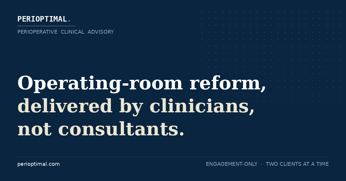His writing on perioperative reform, the four-lens methodology, and clinician-led consulting appears at perioptimal.com/insights.